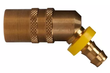Gniazdo 45° DN 6 szybkozłącza z końcówką do węża PUSH-ON, z zaworem, seria TST 060, mosiądz