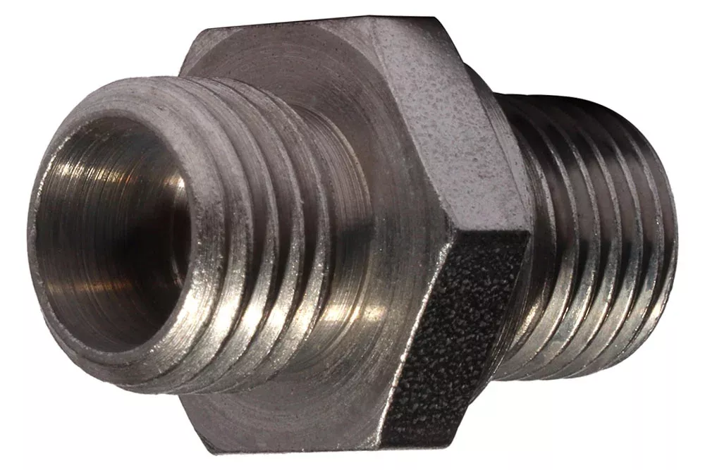 Przyłączka prosta z gwintem zewnętrznym BSP uszczelnienie czołowe (metal - metal) DIN 3852-B, GE-BB