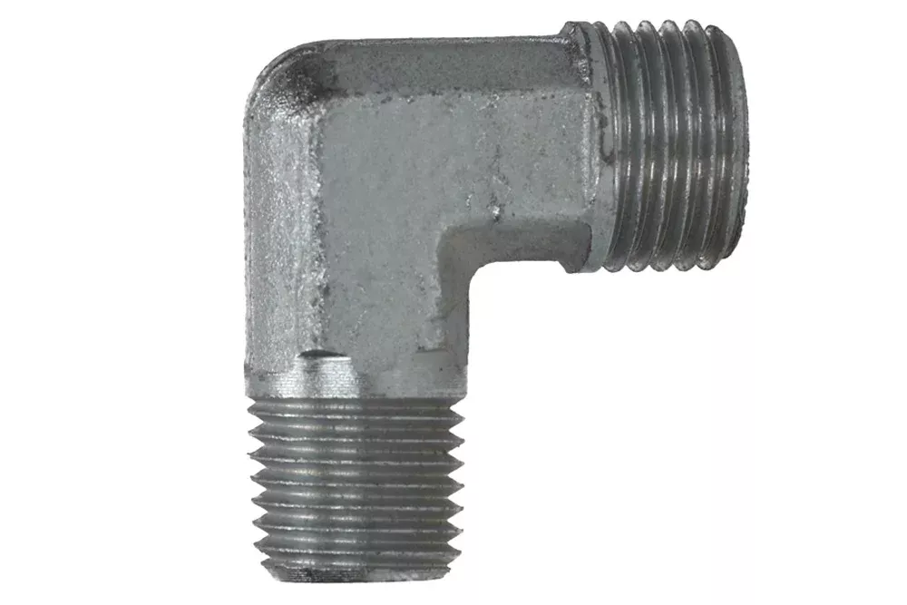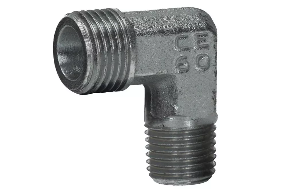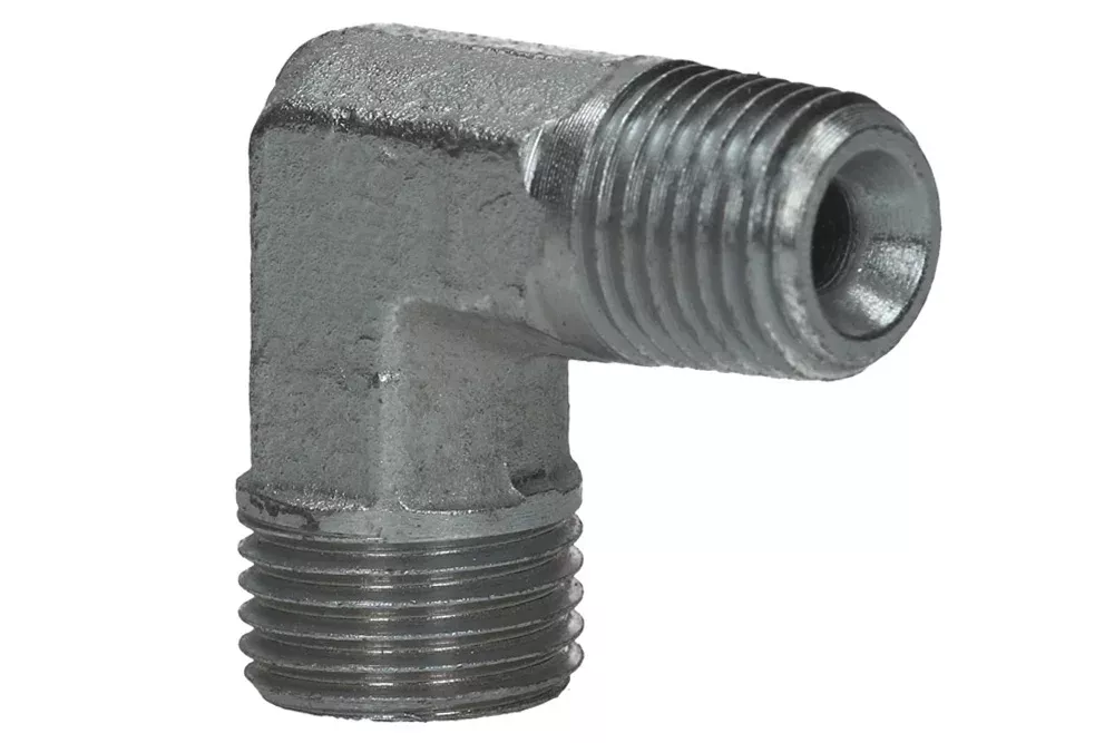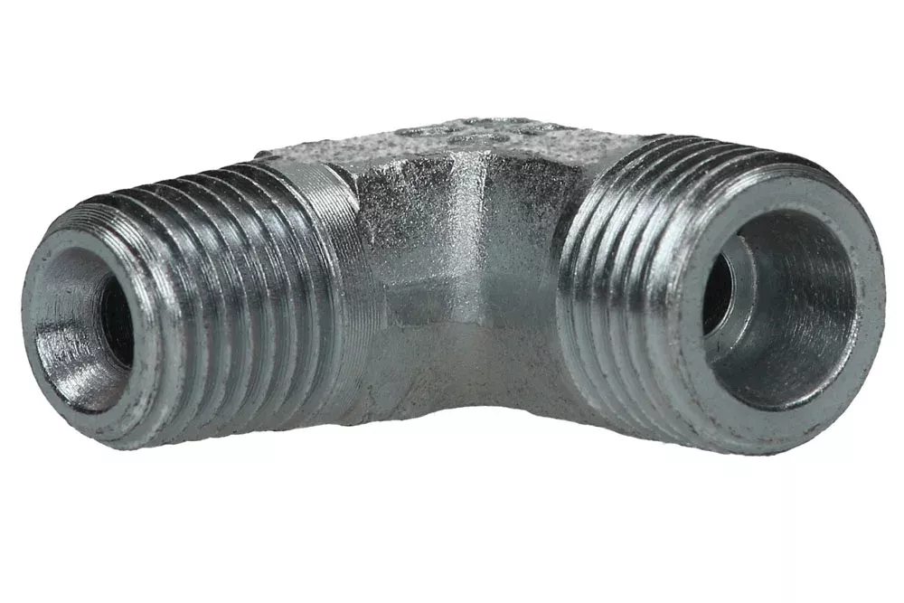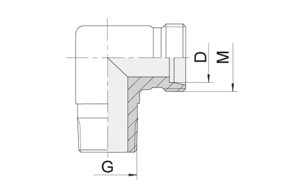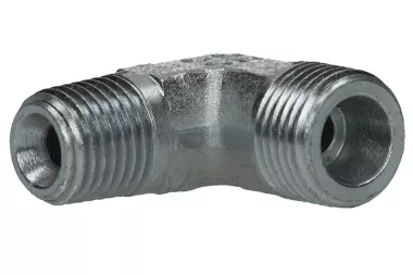 Przyłączka DIN 2353 wkrętna kątowa: gniazdo 24° DIN 2353 z gwintem zewnętrznym metrycznym / gwint zewnętrzny NPT (uszczelnienie na gwincie). Materiał: stal węglowa, ocynkowana.