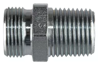 Przyłączka DIN 2353 Eaton Walterscheid™ wkrętna: gniazdo 24° DIN 2353 z gwintem zewnętrznym metrycznym / gwint zewnętrznym NPT (uszczelnienie na gwinciem). Materiał: stal węglowa, z powłoką galwaniczną Guardian Seal™.