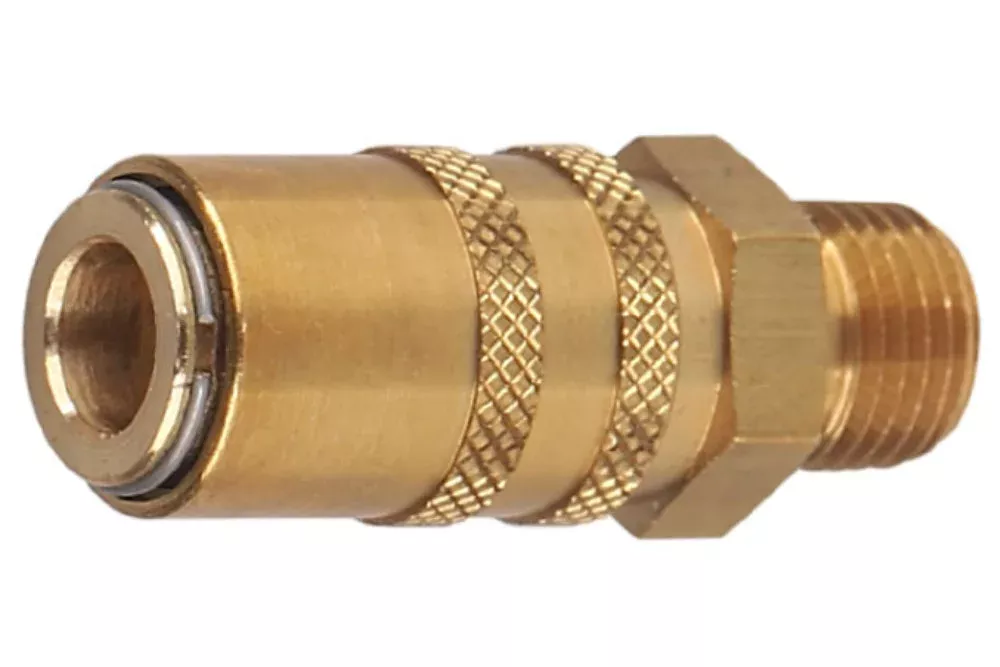 OpisSeria: TST 6. Ciśnienie robocze: 10 bar. Materiał: mosiądz (korpus gniazda, przyłącze, tuleja, zawór), stal nierdzewna (sprężyna, pierścień, kulki). Temperatura pracy: od -20°C do +200°C (viton).