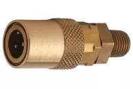 OpisSeria: TST 6. Ciśnienie robocze: 10 bar. Materiał: mosiądz (korpus gniazda, przyłącze, tuleja, zawór), stal nierdzewna (sprężyna, pierścień, kulki). Temperatura pracy: od -20°C do +200°C (viton).