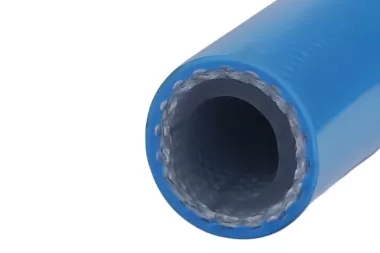 Warstwa wewnętrzna: bezbarwny, gładki PVC. Wzmocnienie: podwójny oplot poliestrowy. Warstwa zewnętrzna: niebieski PVC. Temperatura pracy: od -20⁰C do +80⁰C (dla 80 bar do +50⁰C) ciśnienie robocze zależne od temperatury.
