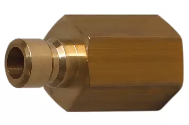 Wtyk DN 6 szybkozłącza z gwintem wewnętrznym BSP, bez zaworu. Stosowany szeroko w przemyśle do chłodzenia form wtryskowych i odlewniczych części z tworzyw sztucznych, aluminium, mosiądzu i stopów cynku. Może być stosowane do wody w maszynach czyszczących, do gorącego oleju, pary wodnej. Średnica przelotu: 6 mm. Ciśnienie robocze: 10 bar. Materiał: mosiądz. Temperatura pracy: od -20°C do +200°C.